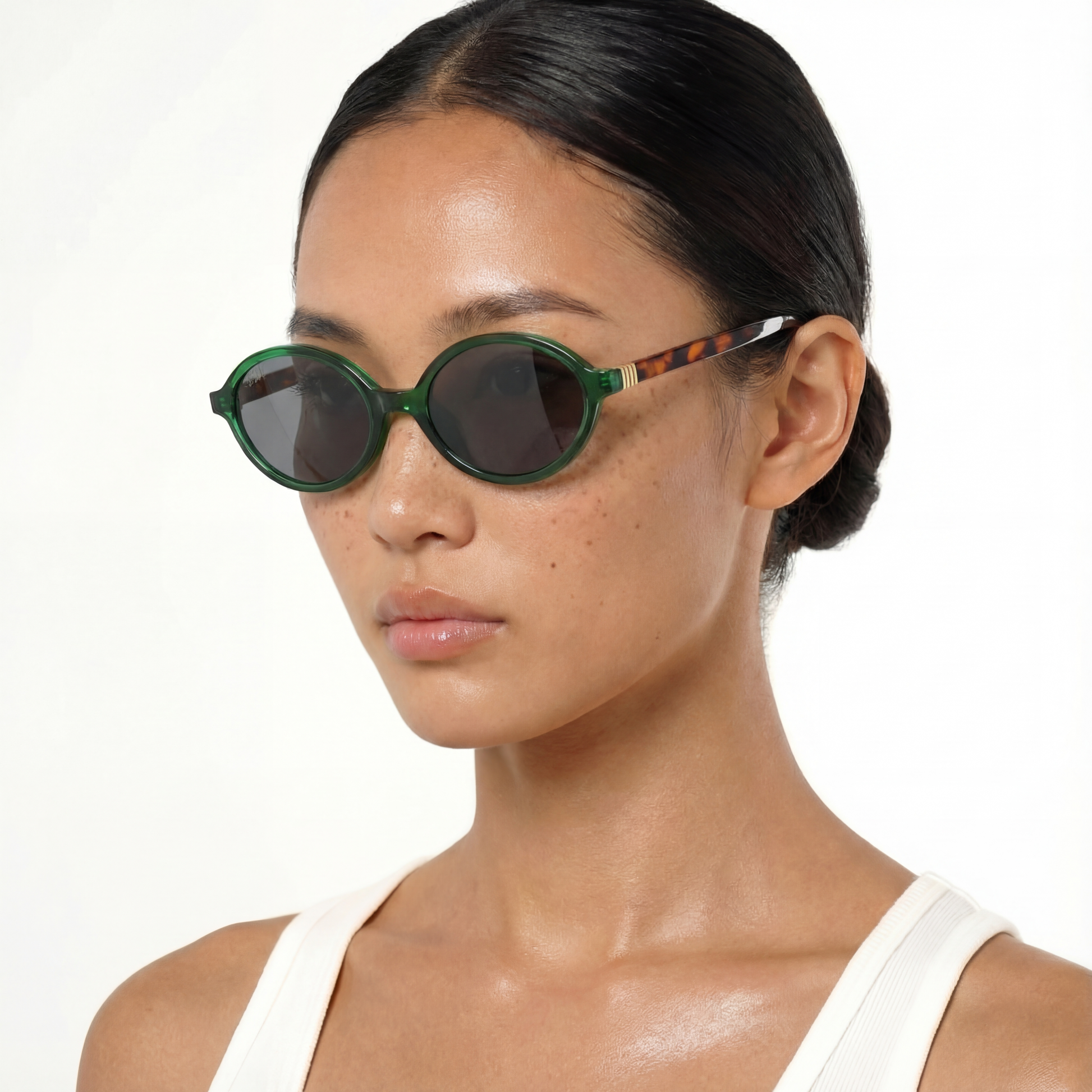 Lightweight oval sunglasses featuring a refined 90’s-inspired silhouette.